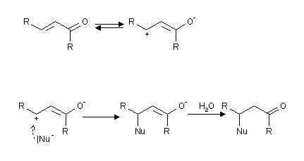 Dadurch ist das beta-C-Atom elektropositiv und somit ein guter Angriffsort für Nucleophile.