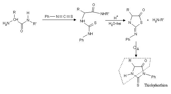 Die Aminosäure kann dann über den Schmelzpunkt oder durch Chromatographie bestimmt werden.